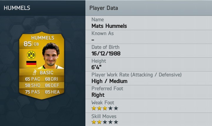Mats Hummels FIFA 14 Rating Published September 5, 2013 at 720 × 430 in Top 50 FIFA 14 Player Ratings Exposed ← Previous Next → Mats Hummels FIFA 14 Rating We’ve posted Mats Hummels FIFA 14 Rating in full for your viewing pleasure