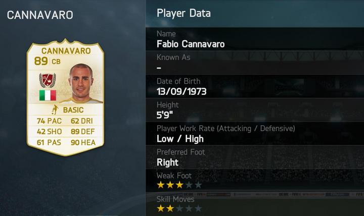 FUT Legends Fabio Cannavaro Published November 2, 2013 at 720 × 428 in FUT 14 Legends Ratings Unveiled ← Previous Next → FUT Legends Fabio Cannavaro FUT Legends Fabio Cannavaro