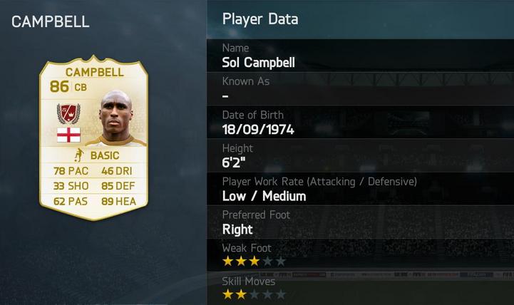 FUT Legends Sol Cambell Published October 29, 2013 at 721 × 428 in FUT 14 Legends Ratings Unveiled ← Previous Next → FUT Legends Sol Cambell FUT Legends Sol Cambell