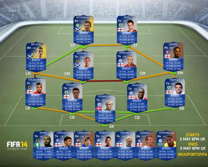 Some of the more notable inclusions in the FL team of the season include Kasper Schmeichel, Kieran Trippier, Danny Drinkwater and golden boot winner Ross McCormack. You’ll be entitled to 10 of these packs as that’s the limit that EA put on each account. If you don’t happen to find any of these players then you can always open some premium packs or wait until Electronic Arts do a happy hour. Check out the full starting lineup, subs and reserves below.