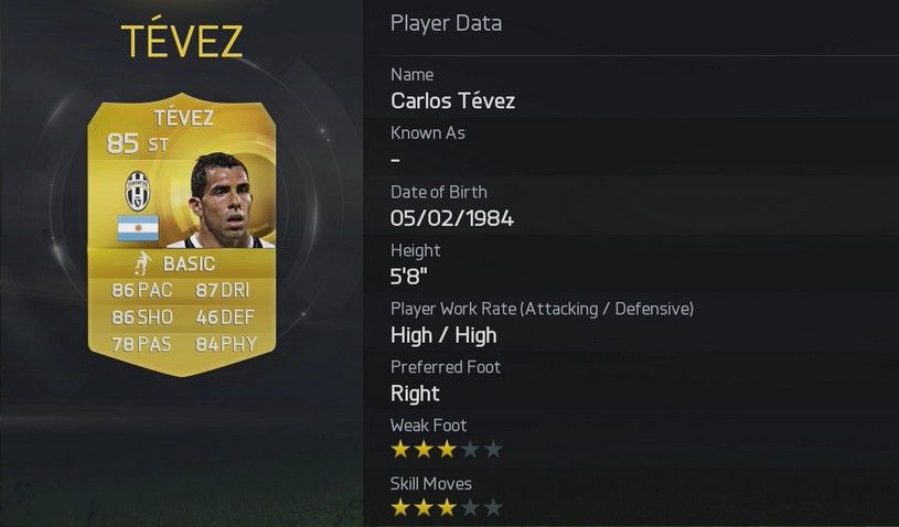 Carlos Tevez FIFA 15 Stats Published September 4, 2014 at 815 × 478 in The Top 50 FIFA 15 Player Ratings Released By EA ← Previous Next → Carlos Tevez FIFA 15 Stats Carlos Tevez FIFA 15 Stats