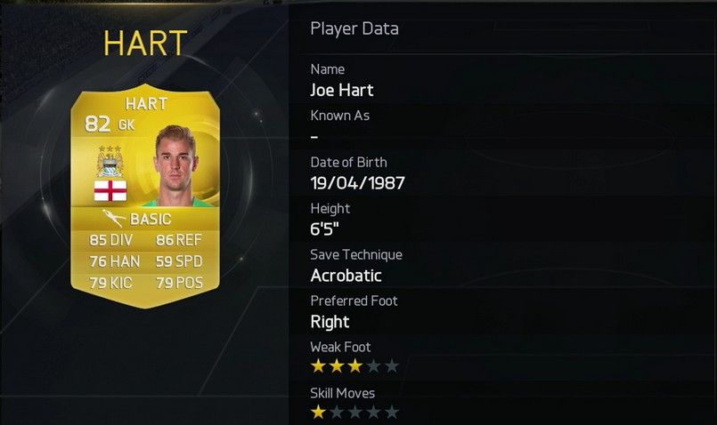 Joe Hart Stats Published September 15, 2014 at 805 × 478 in FIFA 15 Top 20 Goalkeepers Full List ← Previous Next → Joe Hart Stats Joe Hart Stats on FIFA 15 are really good for a goalkeeper