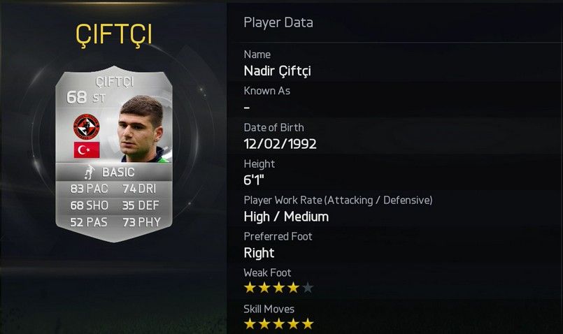 Nadir Ciftci Published September 17, 2014 at 805 × 478 in Full List Of Five-Star Skill Players On FIFA 15 ← Previous Next → Nadir Ciftci Nadir Ciftci has five-star skill moves on FIFA 15