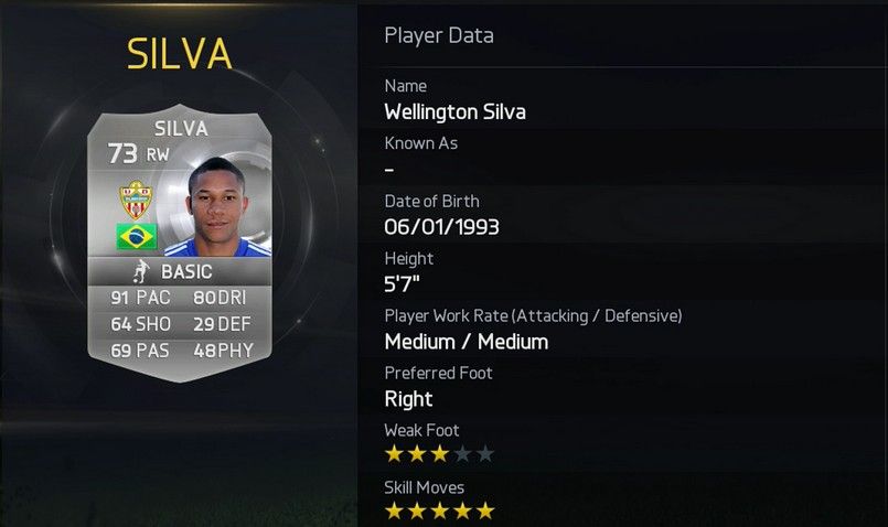 Wellington Silva Published September 17, 2014 at 805 × 478 in Full List Of Five-Star Skill Players On FIFA 15 ← Previous Next → Wellington Silva Wellington Silva has five-star skill moves on FIFA 15