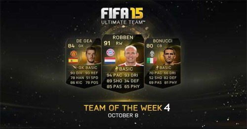 Big hitters such as Robben, De Gea, Lacazette are all IF (In-Form) and will be available to acquire on premium gold packs from 6pm (UK time), on October 8th 2014 up until 5:30pm (UK time), on October 15th 2014 up until 5:30pm (UK time), You will also be able to challenge this TOTW from the FUT hub on the main menu when you enter Ultimate Team, you’ll receive coins based on what difficulty setting you choose to select.