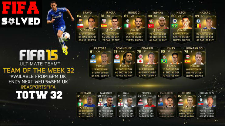 The 32nd edition of FIFA 15 Ultimate Team TOTW is not the best that you’ll see this year, but it has one of the best players in a first in-form Eden Hazard 89 rated card available. You can check out the full list of players that made it into the starting eleven, subs bench and reserve squad below.