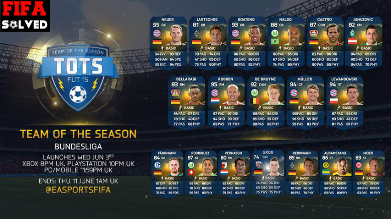 EA Sports have unveiled the full list of players that have made the German Bundesliga FIFA 15 Ultimate Team of The Season and you can check out the starting eleven, subs bench and reserves below.