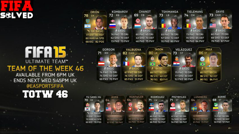 Check out the 46th FIFA 15 Ultimate Team TOTW featuring another IF Hulk at RW and many others from the leagues that are still playing competitively right now.
