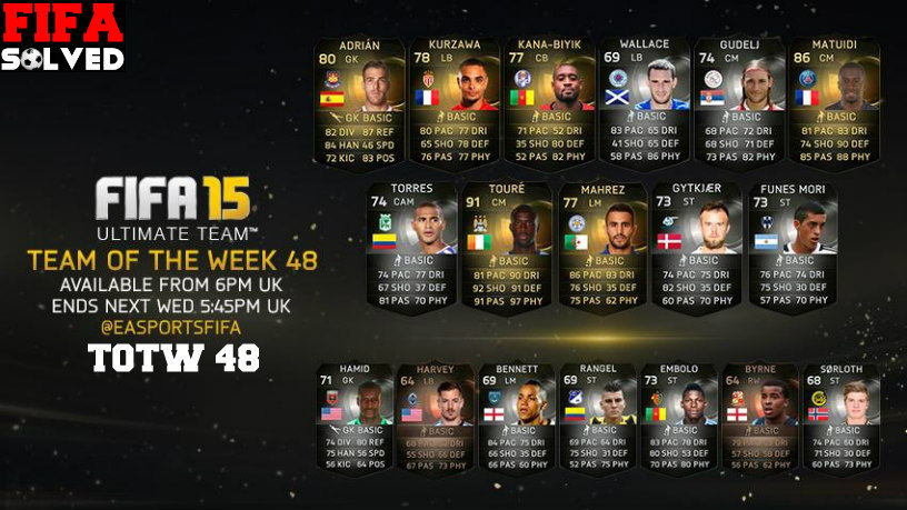 The 48th edition of FIFA 15 Ultimate Team see’s the Premier League and other major European leagues return to action and the TOTW get interesting once again. Check out the full starting eleven, subs bench and reserve squad below.